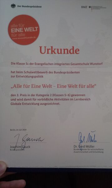 „Mit ihrem Projekt ‚Gemeinsam durch offene Türen’ haben sie sich unter mehreren hundert anderen Klassen mit Erfolg durchgesetzt. Ihr Engagement für die Kinderhilfsorganisation ‚raise-a-smile’, die sich für die Errichtung von Schulen im ländlichen Raum in Sambia einsetzet, ist einzigartig. Mit dem Verkauf von Kuchen und Keksen haben sie das Projekt finanziell unterstützen können. Genauso wichtig aber war die inhaltliche Auseinandersetzung und Reflexion über die Situation in Sambia und das Thema Bildungsgerechtigkeit. Die Intensität der Lernerfahrungen sowie die hohe Eigenorganisation und -gestaltung des Lernprozesses ist vorbildlich, die Dokumentation in Form eines Filmes herausragend gelungen. Mein Dank gilt allen, die die 5c auf diesem Weg unterstützt haben, insbesondere den Klassenlehrern Sandra Bertl und Jannes Müller und der Medienpädagogin Christina Nur. Den Schülerinnen und Schülern gratuliere ich sehr herzlich zum Gewinn des 3. Preises, den sie sich redlich verdient haben“, spricht Landessuperintendentin Spieckermann ihre Anerkennung aus.