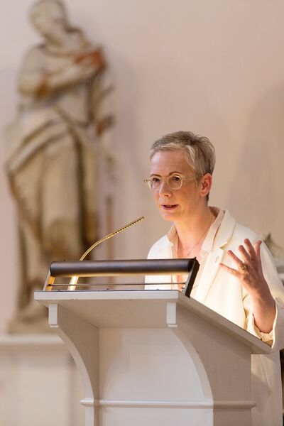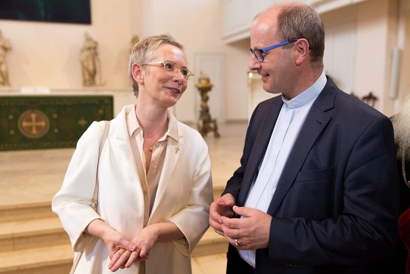 Dem Festvortrag ging ein Grußwort von Prof. Dr. Katja Lembke voraus. Die Direktorin des Landesmuseums Hannover, die auch Synodenmitglied der ev.-luth. Landeskirche Hannovers ist, unterstrich in ihrem Redebeitrag, dass das Christentum nicht allein nach der Kirchenmitgliedschaft bemessen werden könne. „Christentum ist das moralisch-ethische Gerüst unserer Gesellschaft, damit ist es nicht tot, sondern lebt von Generation zu Generation weiter.“ Die Rede vom „postchristlichen Zeitalter“ treffe daher nicht zu. „Zahlreiche Flüchtlinge kämen heute nach Europa, gerade weil sie auf ein liberales Menschenbild stoßen, das durch Christentum und Humanismus geprägt worden ist.“ Lembke ruft daher dazu auf, sich mit Stolz zu den christlichen Grundwerten zu bekennen, ohne dabei die Schattenseiten der Geschichte zu vergessen.