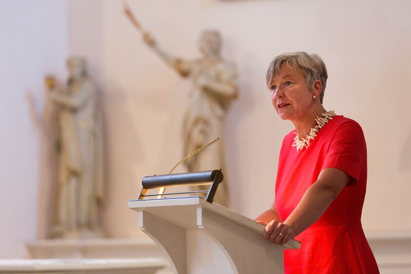 Prof. Monika Grütters, Staatsministerin für Kultur und Medien, hielt den Festvortrag mit dem Titel „Was Martin Luther uns heute zu sagen hätte“. Dass ihr als Katholikin das Rednerpult und die Auseinandersetzung mit dem revolutionären Vermächtnis Martin Luthers überlassen sei, deutete Grütters als ein wunderbares Beispiel für gelebte Ökumene. Die bekennende Katholikin Grütters ist seit 2013 Beauftragte der Bundesregierung für Kultur und Medien und zugleich Sprecherin für Kultur im Zentralkomitee der deutschen Katholiken.