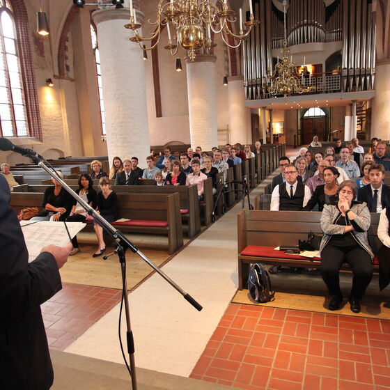„Die Orgel ist eine Königin. Sie mag die Lieder im Kindergottesdienst ebenso wie Frühbarock und Spätromantik. Und sie kann sogar Punk, Rock und Jazz.“ sagte die hannoversche Regionalbischöfin in ihrer Ansprache. Sich auf dieses vielseitige Instrument einzulassen, verlange Mut. Die Freude über die Stipendiaten, die sich dieser Aufgabe stellten, sei daher groß. „Ohne sie würden die Gottesdienste fade sein.“, gibt Petra Bahr zu bedenken.