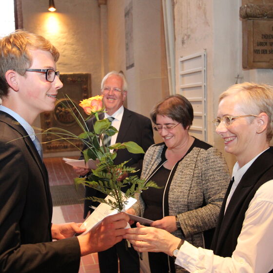 Gemeinsam mit Kirchenmusikdirektor Lothar Mohn und der Burgdorfer Superintendentin Sabine Preuschoff-Kleinschmit, die im Auswahlgremium die Bewerbungen sichteten, überreichte Landessuperintendentin Dr. Petra Bahr den Nachwuchsorganisten eine Urkunde. Fenja Wagner, ehemalige Stipendiatin untermalte die Feierstunde musikalisch mit Orgelstücken von Johann Sebastian Bach. Beim anschließenden Sektempfang zog es viele der frisch Ausgezeichneten gleich auf die Empore, um sich von Christian Scheel, dem örtlichen Kantor, ausgiebig die wuchtige Orgel der St. Martin-Kirche erläutern zu lassen.