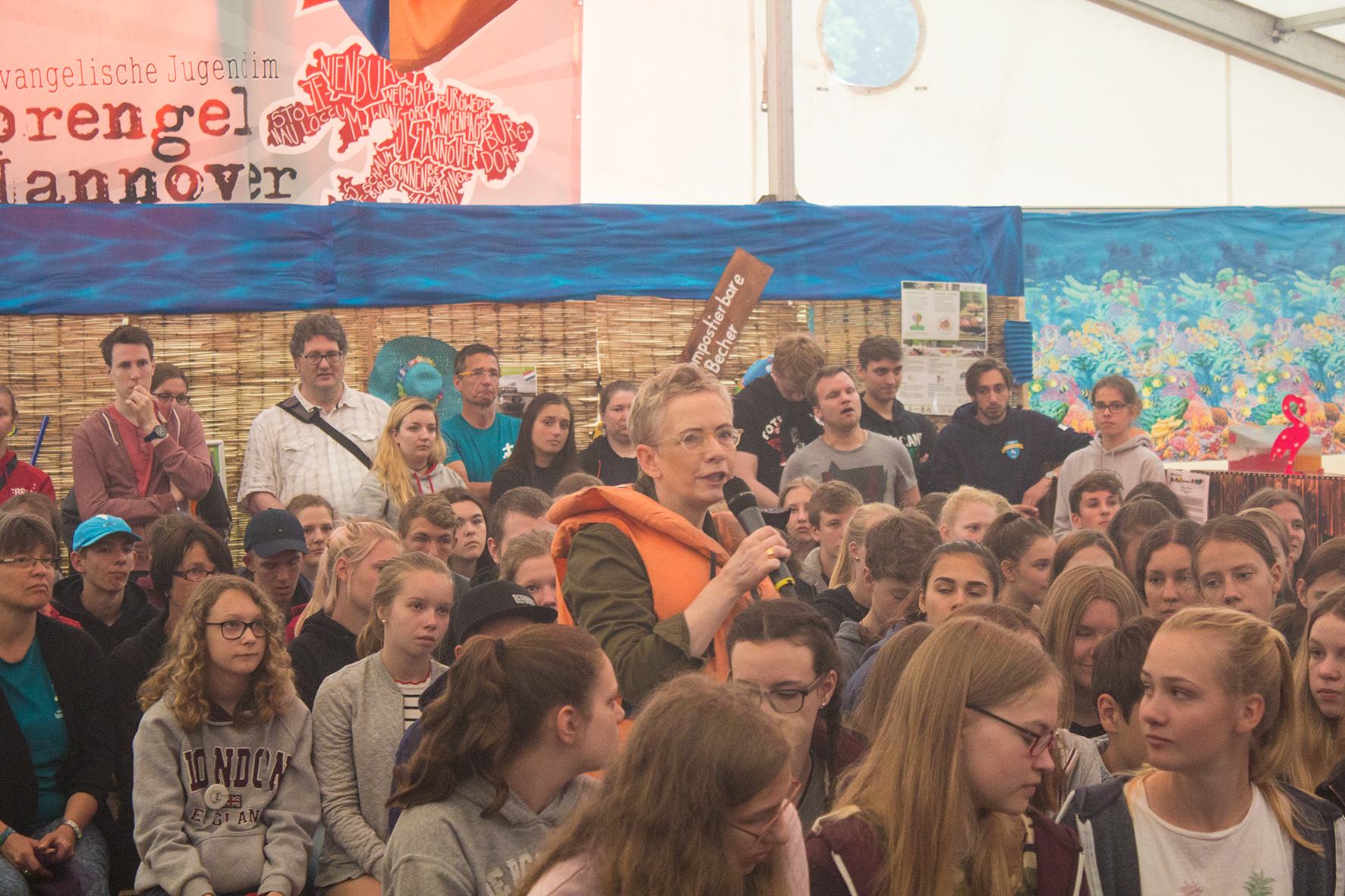 Mit rund 2.000 Teilnehmenden ist das Landesjugendcamp eine der größten nicht-kommerziellen Veranstaltungen in Niedersachsen, dessen Vorbereitung und Durchführung maßgeblich in der Hand von Jugendlichen liegt. Unter dem Motto „Lautstark“ kamen am vergangenen Wochenende junge Menschen aus der gesamten Landeskirche zusammen, um gemeinsam Kirche neu zu erleben, Gemeinschaft zu erfahren und den aktuellen Fragen ihres Lebens nachzugehen. Aus dem Sprengel Hannover nahmen rund 360 Jugendliche teil - Grund genug für Landessuperintendentin Dr. Petra Bahr das Camp zu besuchen und einige Stunden dort zu verbringen.