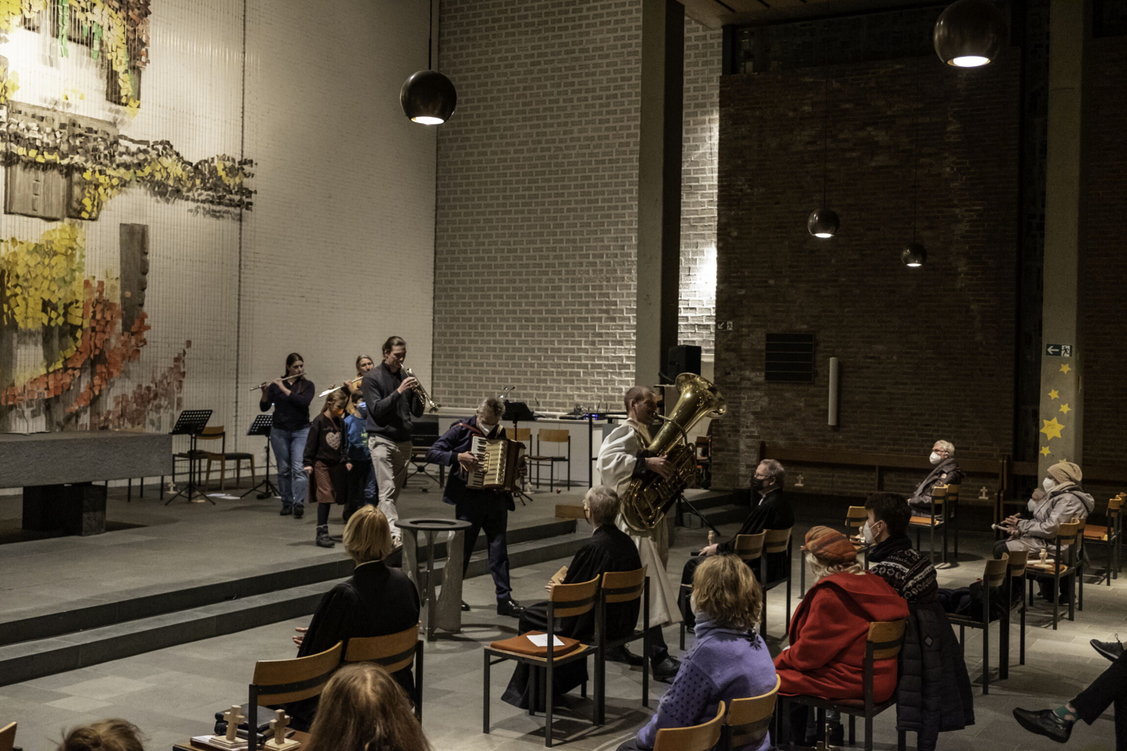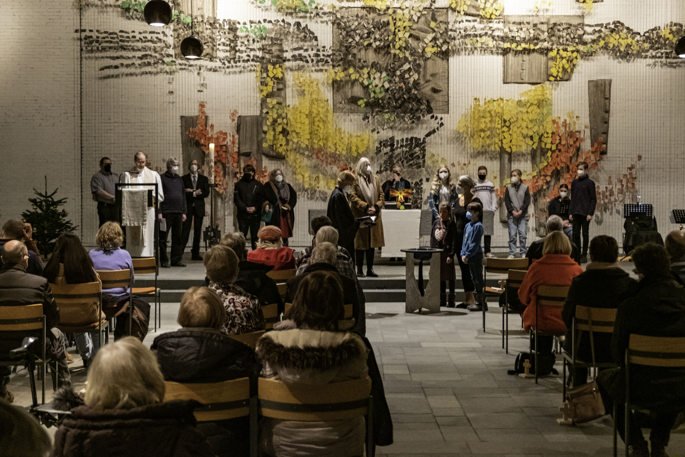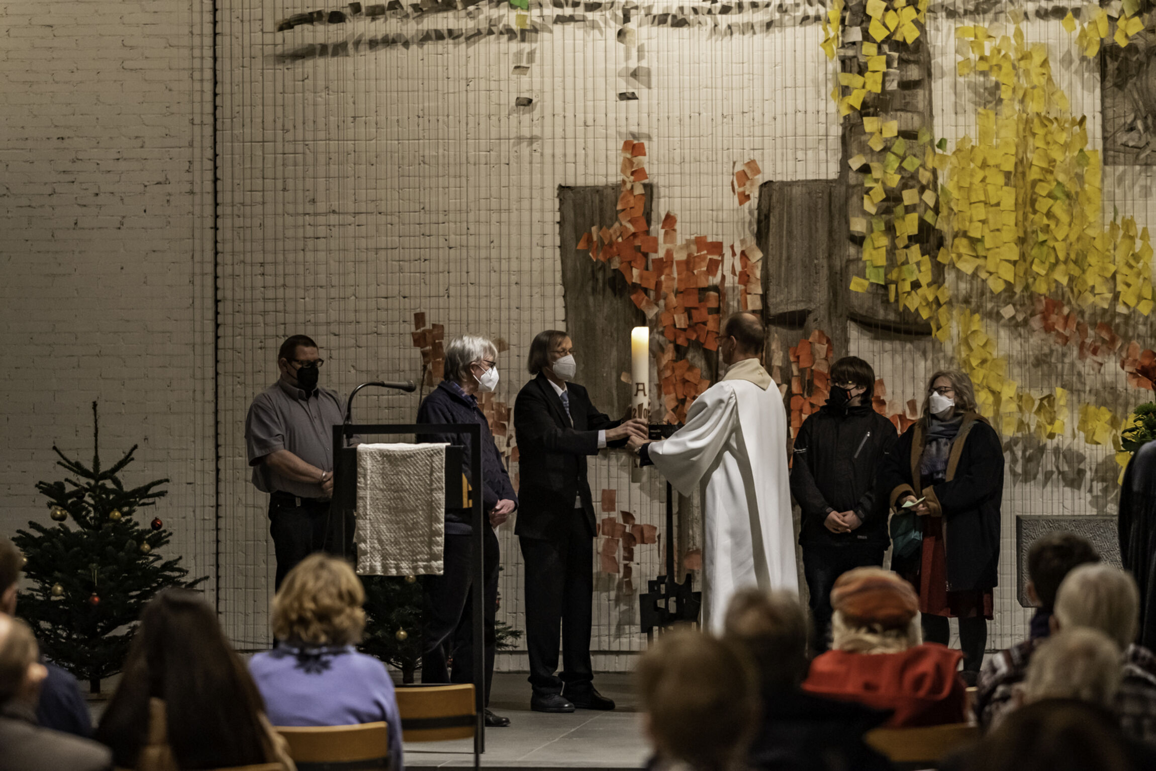 Mit einem bewegenden letzten Gottesdienst hat sich die Kirchengemeinde Ledeburg-Stöcken am Abend des zweiten Weihnachtstages von ihrer 1963 errichteten Bodelschwingh-Kirche verabschiedet. „Es gibt schöneres als am Weihnachtstag eine Kirche zu entwidmen“, sagt Pastor Gerd Peter in seiner Begrüßung der 95 Gottesdienstbesucher*innen. Auch wenn ein neues Kirchenzentrum bereits in Planung sei, tue der Abschied weh. In einer Prozession trugen Gemeindemitglieder Osterkerze, Taufschale, Bibel, Altarkreuz und Abendmahlskelch aus dem Gebäude und führten sich und den Mitfeiernden symbolisch den Auszug vor Augen. Damit kommen fast 60 Jahre Gemeindeleben unter dem Dach des Ledeburger Kirchenbaus zu einem Ende.