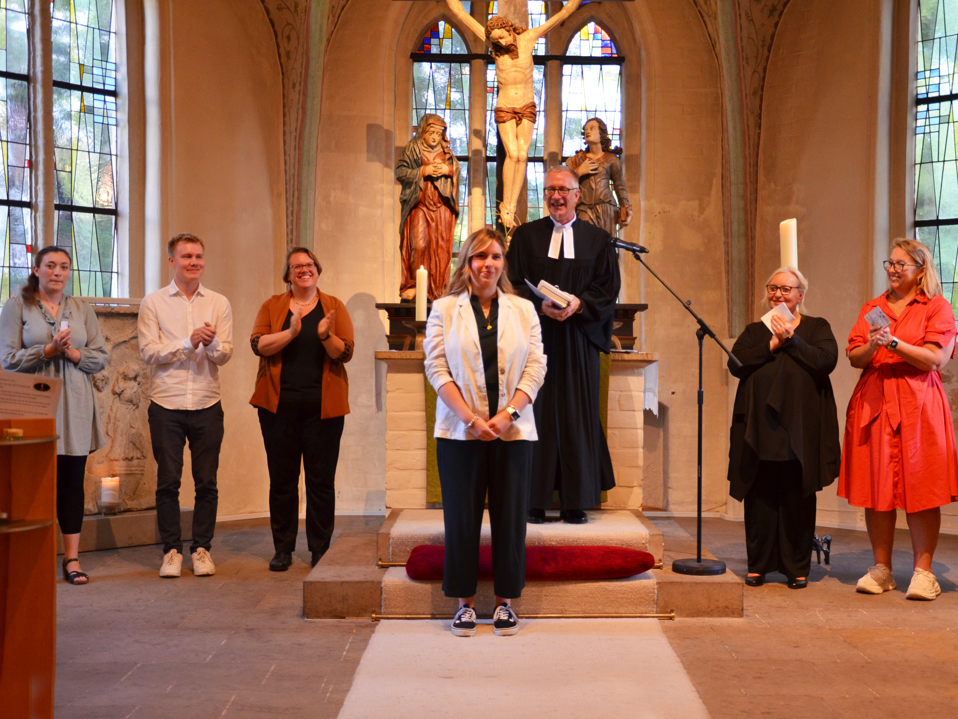 Bereits seit zehn Monaten ist Laura Schmidt als Kirchenkreissozialarbeiterin im Kirchenkreis Burgwedel-Langenhagen tätig; ihr Anstellungsträger ist der Diakonieverband Hannover-Land. „Mich interessieren so viele Dinge: Pädagogik und Psychologie, Theologie und Soziologie und auch Ethik und Rechtswissenschaft“, erzählt sie – in ihrem Studium der Religionspädagogik und Sozialen Arbeit konnte sie all diese Dinge miteinander vereinbaren. „Möge Gott dir deine Begeisterungsfähigkeit und deine Begeisterung bewahren“, wünschte Dirk Jonas der Diakonin und auch dem Kirchenkreis Burgwedel-Langenhagen.